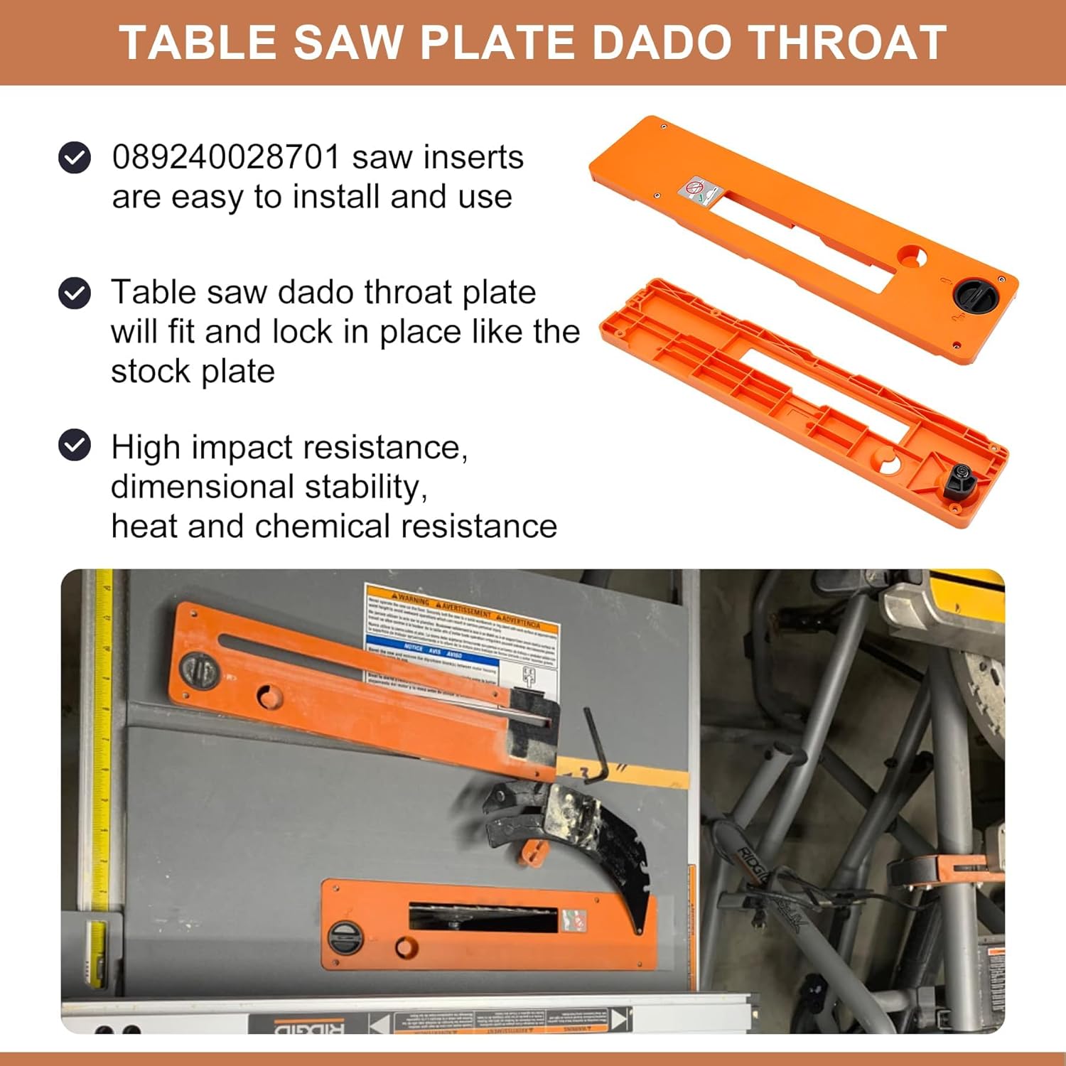 Package Include:1 X 089240028701 Replacement Table Saw Plate Dado ThroatFit:Compatible with R4514, R4514T, R4518, R4518T, 089240028701High Quality:Made of PC+PBT materials. The PC/PBT building grade material blend has high impact resistance, dimensional stability, heat resistance and chemical resistance. The product molding process uses nitrogen to increase the product hardness and ensure the flatness, which can make the wood board cut in parallelSize:1" slot width