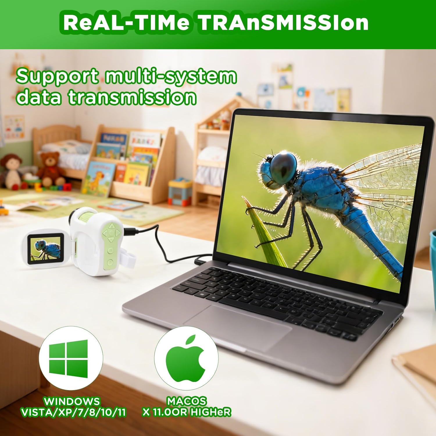 | BuiltIn Media | 1 x Kids Microscope / Pocket Microscope (Memory Card Not Included), 1 x Instruction Manual, 1 x Accessory Bag, 1 x Data Cable, 1 x Specimen Color Box |