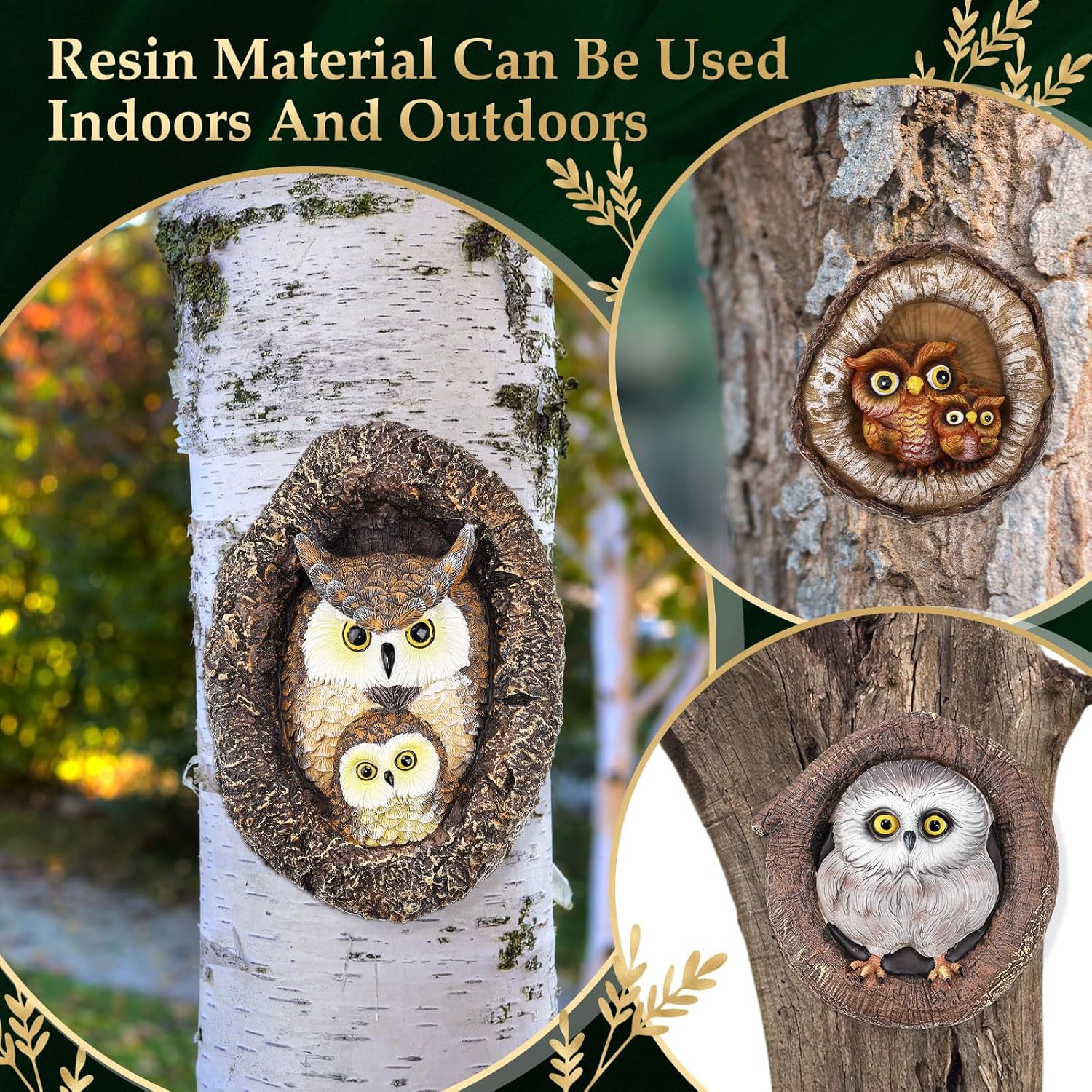 Features: The tree faces decor outdoor instantly adds a unique and whimsical touch to any outdoor space. These owl garden decorations are designed to be installed on trees to give them a living presence, adding a conversation starting element to the garden. The tree faces decor outdoor is built to withstand all types of weather conditions, ensuring it remains a striking feature in your garden year round. Simply attach the pieces into your chosen tree with the provided attachments, no specialist tools required. With resistance to fading and decay, this durable tree decor promises long term exterior use with minimal maintenance required. Specifications: Material: resin Main color: brown Size: 9.5 x 6.7 inch, 6.9 x 6.6 inch, 4.25 x 3.94 inch Package includes: 3 x Tree face decor Notes: Manual measurement, please allow slight errors on size. The color may exist a slight difference due to different screen displays