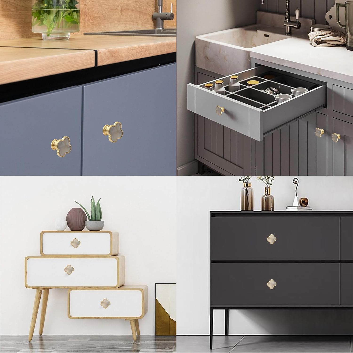 Light luxury floral door pulls (with screws) Set includes: 4 x drawer knobs, 4 x pulls with screws, 4 x coat hooks with screws These light luxury deluxe knobs are versatile: 1., You can use them for any storage furniture, such as wardrobes, chests of drawers, kitchen cabinets, dressers, nightstands, cupboards, mirrored furniture, bathroom cabinets, bins or any other place you can think of. 2., It can also be mounted on the wall and used as a hook, with a stylish look and high quality performance that will brighten up your home space If you're looking to make any kind of home upgrades, these dexterous and sturdy knobs are the way to go. They will give your furniture or cabinets a new look in an affordable way!