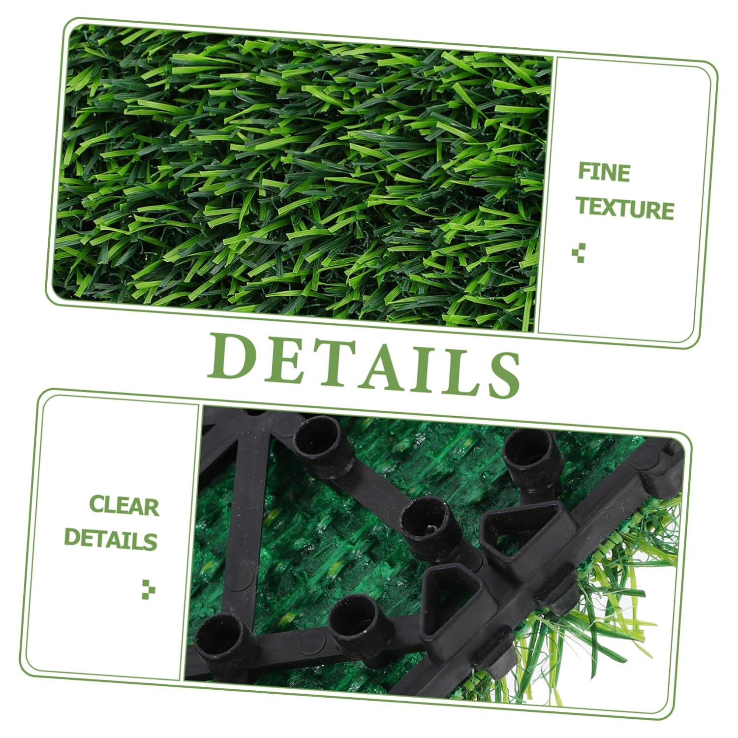 Package List 4 x Artificial Grass Turf Rug Characteristics -Color:Green artificial grass carpet -Material:Plastic fake grass doormat -Diy friendly: for DIY enthusiasts, use it for fairy gardens, mini golf courses, easter displays, spring decorations, and school projects lawn carpet -Simple cleaning: easy to clean and maintain, just rinse with water and let it air dry, ensuring it stays and green artificial grass indoor - look: made from plastic, this artificial grass has a realistic appearance that closely resembles grass preserved moss mat -Size:30.00X30.00X4.00cm/11.79X11.79X1.57in DIY synthetic turf -Multipurpose: ideal for creating realistic lawns in gardens, balconies, rooftops, and more, suitable for both indoor and outdoor environments potty training rug -Balcony grass rug: no need for regular upkeep, the artificial grass remains green and vibrant throughout the year DIY grass matGoods Informationartificial grass for crafts Durable and realistic, they are a great addition to any environment.grass pad Enhance your decor with our green artificial square grass flooring.outdoor flooring These tiles are for creating a serene and inviting atmosphere in any space.DIY turf carpet Whether you're looking to spruce up your backyard, create a pet-friendly area, or add of green to your office, these grass tiles are the