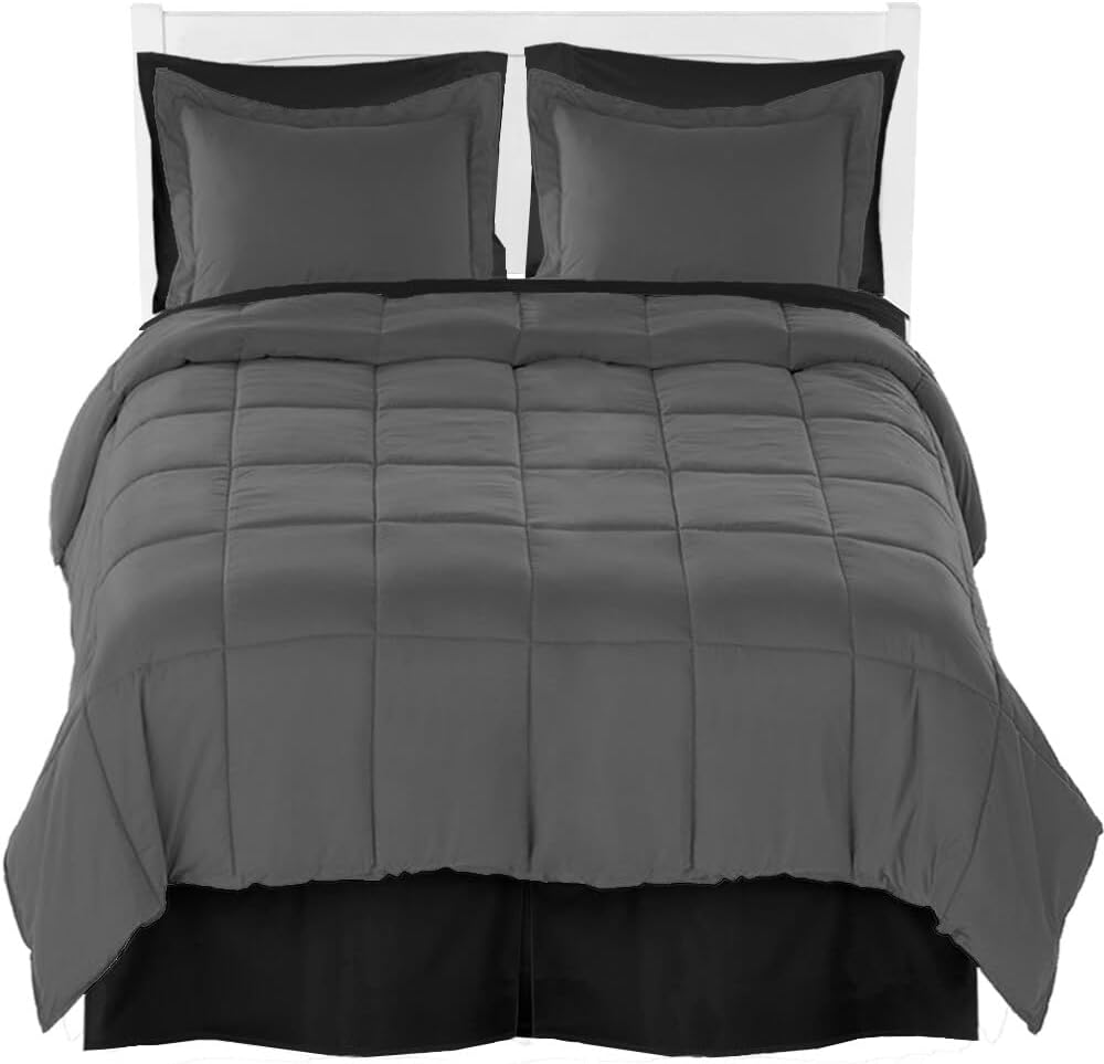 Comforter + Sheet Set - Microfiber - Queen - Grey/Black/Grey,comforter,duvet insert,duvet,comforters,comforter sets,duvet queen size,comforter queen,cooling duvet insert,queen comforter only,queen bed comforter,lightweight comforter,comforter queen size,queen bed comforter set,queen duvet inserts,down alternative comforter