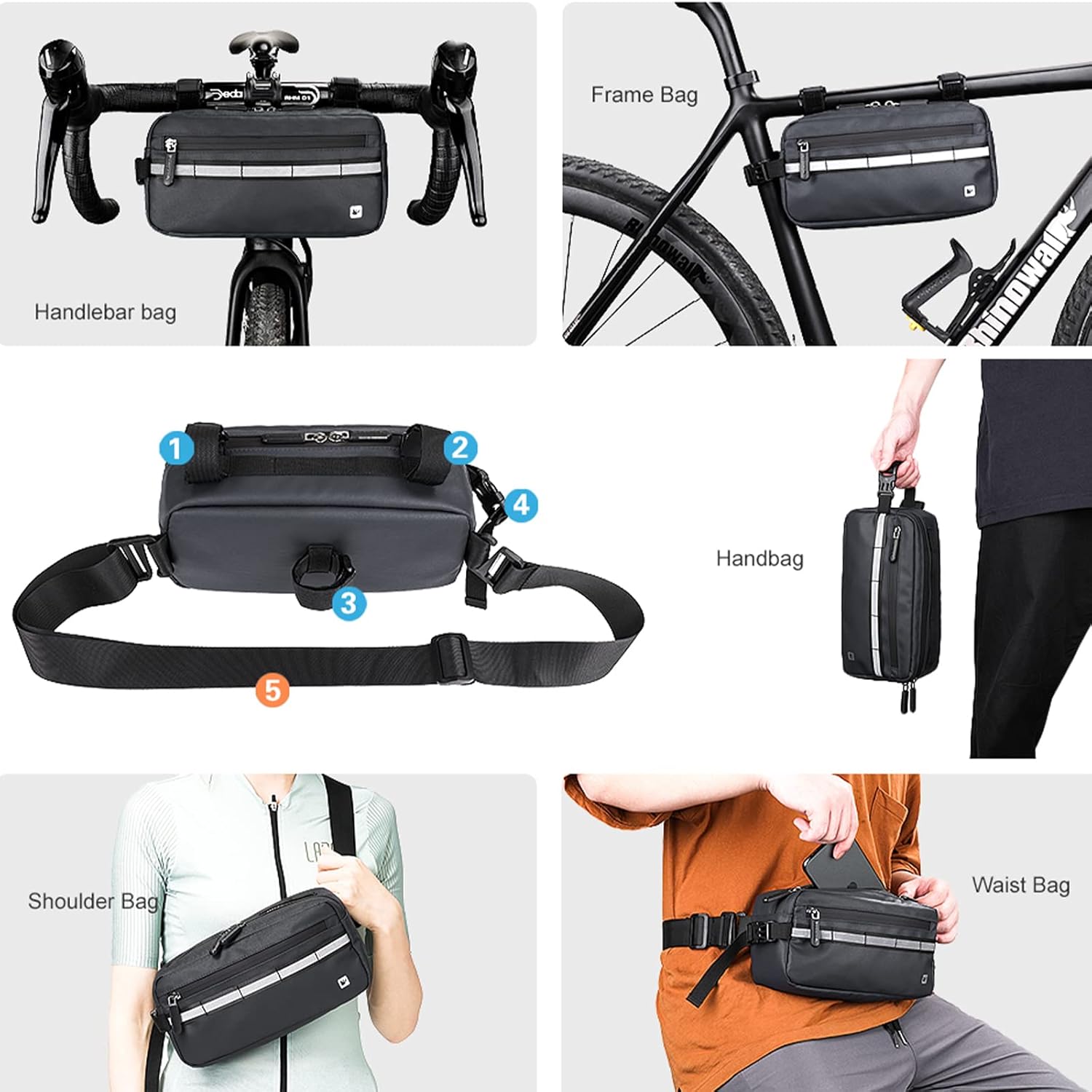 🚲Features:Easy to install.The bike front holder is easy to install, which can be easily tied on your bike by the three magic stickers.Removable, adjustable shoulder strap for convenient carrying.Adopts waterproof polyester material, solid and durable.Suitable for most kinds of bicycles, such as fast riding, road bike and mountain bike.🚲Specifications:Material: 1200D PolyesterFeatures: Large Capacity, Waterproof, Folding DesignSize: 25*8.5*13cm(Approx.)Color:Blue,Black,Gray🚲Package Includes:1 x Bike Handlebar Bag (Other Things Not Included)🚲Notes:Due to the light and screen setting difference, the item's color may be slightly different from the pictures.Please allow slight dimension difference due to different manual measurement.