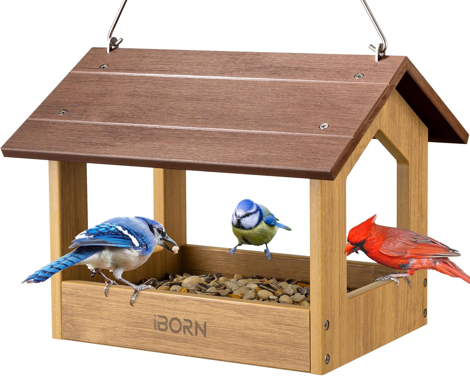 iBorn Pavilion Bird Feeder, Covered Platform Bird Feeder for Outdoors Hanging, WPC Recycled Plastic & Waterproof, Black