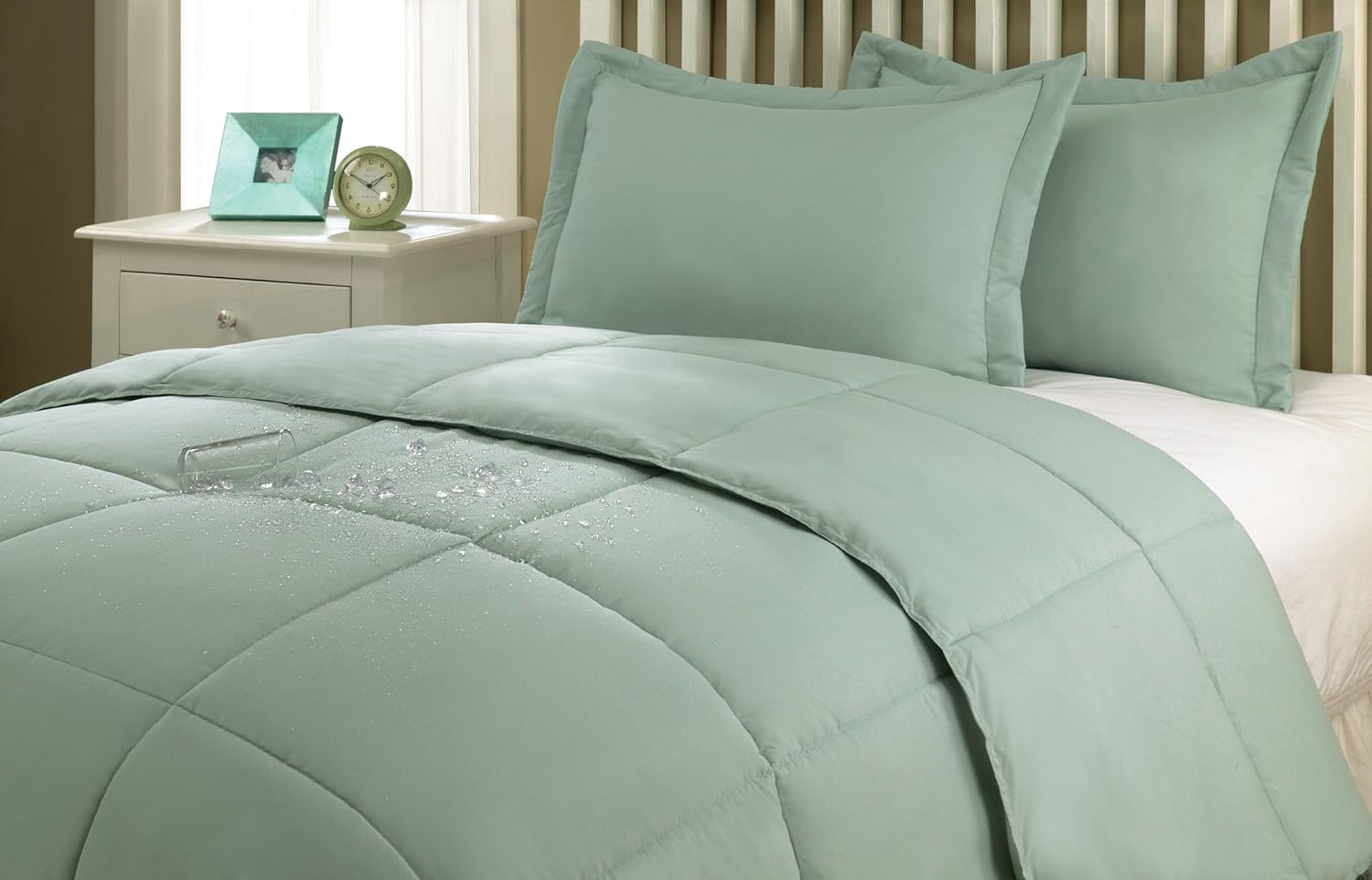 Lotus Home comforter sets look like just another well made solid color ensemble, but that's wherethe similarity ends. When you get the comforter out of the package and onto your bed, give it a liquid test. Go ahead and pour some water on it - you will see the water bounce off the fabric! Bring a towel to sop it up. It will not absorb into the fabric. Made via nanotechnology, Stayclean resists water and stains while retaining 100% of the natural feel of the fabric. So our soft microfiber comforters feel fantastic and have all of the breathability you expect from microfiber. There is no coating to wash out, so the product is long lasting. The comforter is filled with soft polyester fiber and will provide years of comfortable warmth. Easy care and machine washable.