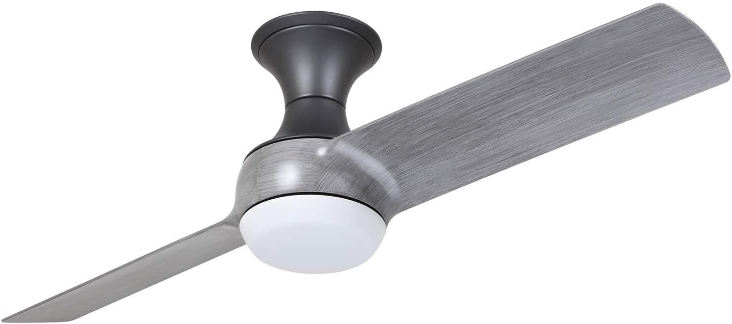 The 54-in Duo ceiling fan from kathy ireland HOME features a sleek silhouette inspired by mid-century modern design. Its polished style and clean transitions harmonize allowing this fan to fit seamlessly into any modern home. The Duo also offers a hugger-like transition from housing to ceiling, making it the perfect choice for lower ceiling applications. With two blades that form directly into the housing, its lock-in design uses minimal hardware, exemplifying its simplicity and making it easy to assemble. The Duo features an integrated LED light fixture and a 6-speed wall control for operation. Select the Duo in Brushed Steel housing with Walnut blades, Satin White housing with Satin White blades or Graphite housing with Timber Gray blades. The current Emerson Ceiling Fan line will be re-branded as kathy ireland HOME. While the name will change, we want to reassure our customers that the product and our core values remain the same.