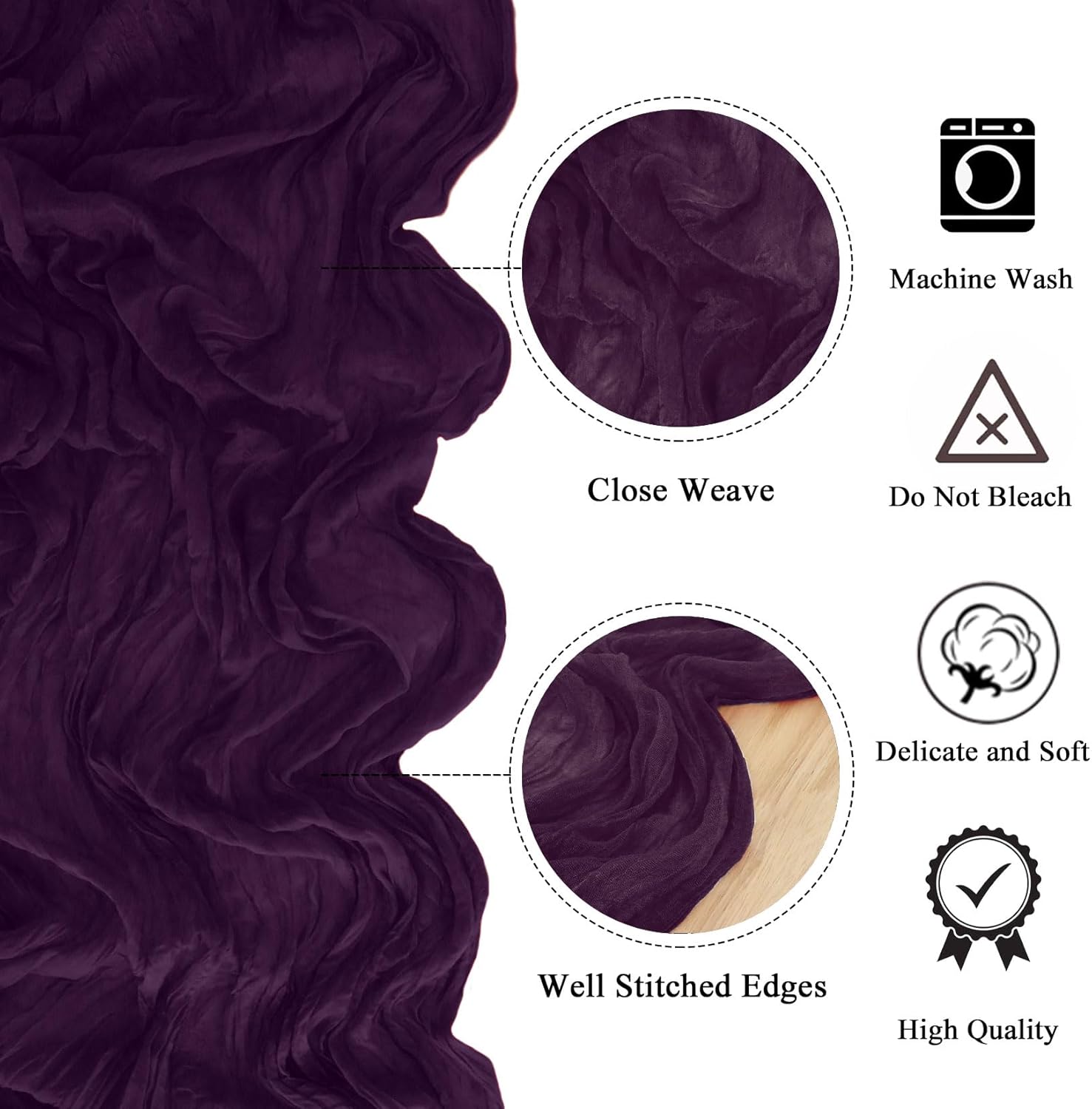 | Included Components | 10 pack cheese cloth table runner, cheesecloth runner for table, dark purple cheesecloth table runner, purple cheesecloth table runners, wedding cheesecloth table runners |