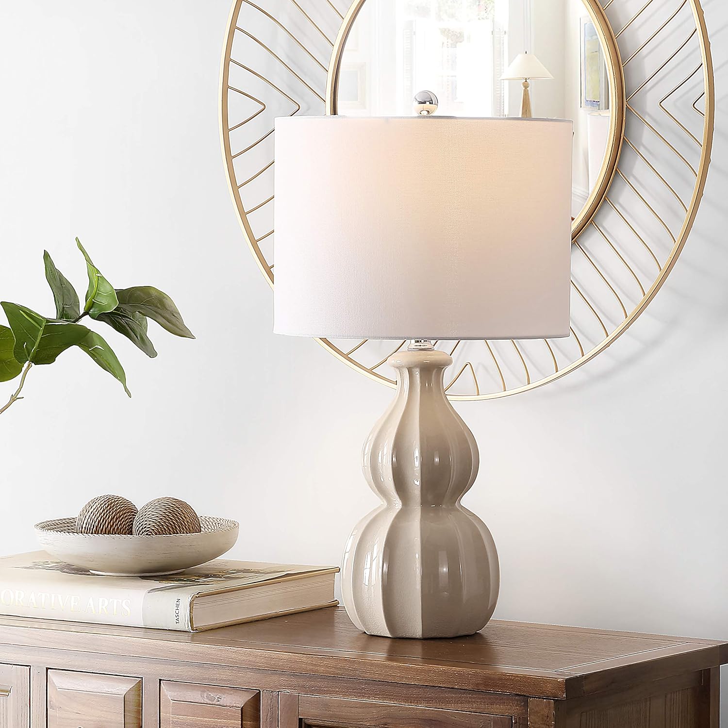 The Wade Table Lamp brings sculptural elegance to contemporary interiors with its striking double gourd silhouette and softly scalloped ceramic form. Finished in a versatile grey glaze, the ceramic base adds subtle texture and visual depth while seamlessly blending into a wide range of color palettes. Chrome-finished metal accents lend a polished contrast, and a clean white drum shade diffuses light for a warm, welcoming glow. Perfect for bedrooms, living rooms, or home offices, this lamp delivers both style and function with a refined presence that elevates nightstands, desks, and accent tables alike.