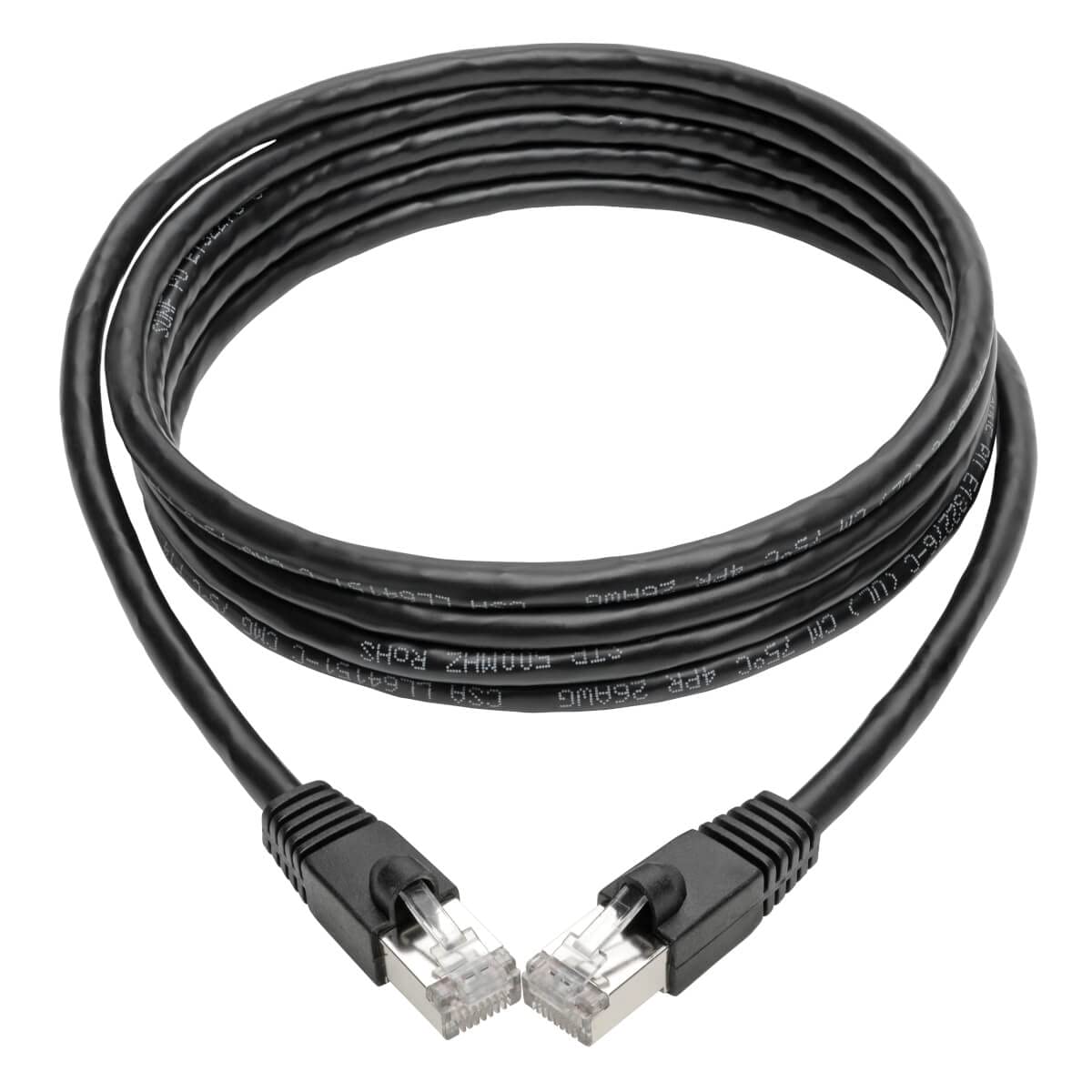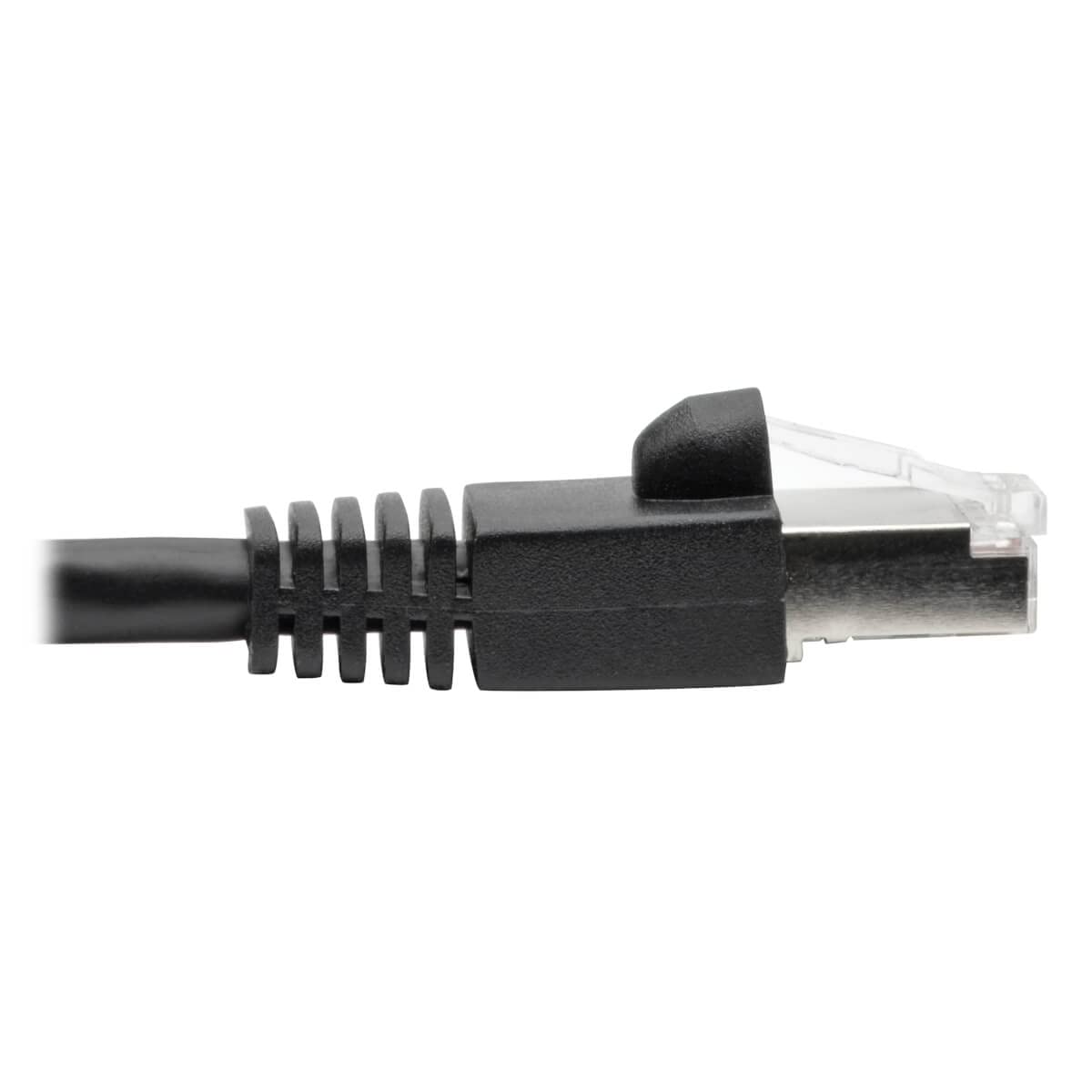 High-Speed Cat6a STP Patch Cable Ideal for Your 10GBase-T Ethernet Network Designed for fast transmission and excellent signal quality, this 15-foot Cat6a cable ensures peak performance throughout your local area network (LAN). It transmits 10 Gbps data, voice and video through high-speed 10G equipment, including network switches, modems, routers, adapters, hubs and patch panels. At 500 MHz, it reduces impedance and structural return loss compared to standard 100 MHz wire. Supports Power over Ethernet to Save You Money and Give You More Installation Choices Because this Cat6a shielded cable supports PoE, it can supply the power to operate compatible PoE devices, such as security cameras, VoIP telephones, point-of-sale kiosks and access control devices. This saves you the expense and effort of purchasing, connecting and installing individual power supplies for each device. It also helps you install PoE devices in areas far away from AC outlets, such as poles or ceilings. Premium Protection from EMI/RFI Line Noise Helps Your Equipment Perform Better Various electromagnetic and radio sources found in virtually every home and business can cause disruptive interference. Known as EMI (electromagnetic interference) and RFI (radio frequency interference), this line noise is a common cause of performance problems. The N262-015-BK shields against disruptive line noise that can disturb your electronics and inflict hardware damage or data loss. This EMI/RFI filtering also helps your connected components perform better and last longer. Snagless RJ45 Male Connectors Add Extra Protection During Installation The RJ45 connectors’ snagless design protects the locking tabs from being damaged or broken off during installation. The ends are shielded to minimize near-end crosstalk (NEXT) levels. Integral strain relief gives the N262-015-BK extra flexibility, reduces stress and helps the cable move freely without cracking or breaking loose from the connector.
