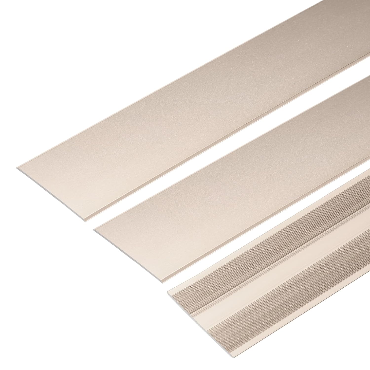 Description:Flat Floor Transition: The laminate floor strips are designed to create a seamless transition between different types of flooring, such as laminate planks or tiles, in doorways or other areas where flooring meets. They help cover gaps and protect the edges of the flooring.Main Material: This set includes 3 pcs flat molding floor transition strips made of aluminum material, each measuring 2 " wide and 3 Ft long. The sleek design and durable aluminum construction provide a modern, sturdy solution for joining flooring gaps.Easy Installation: These flat divider strips are suitable for use in residential or commercial settings to achieve a professional finish when installing laminate flooring. They can be easily cut to size using a saw and installed with adhesive or screws for a secure fit.Wide Application: These floor cover strips are suitable for indoors or outdoors. It can bridge the gap between two different flooring surfaces, providing a smooth transition and preventing tripping hazards. They are suitable for doorways, hallways, bedrooms, furniture, kitchens, living rooms, restaurants, offices, hotels or any area where different floors meet.Warm Tips: Before installation, ensure the floor is clean, level, and dry to promote proper adhesion of the transition strips. Use appropriate tools and safety gear when cutting and installing the strips.Specification:Size: 5 x 90 cm/ 2"x 3Ft (W*L)Thickness: 1.5mm /0.3 inchesColor: BlackMaterial: AluminumPackage Content: 3 Pcs Aluminum Flat Molding Floor Transition Strip