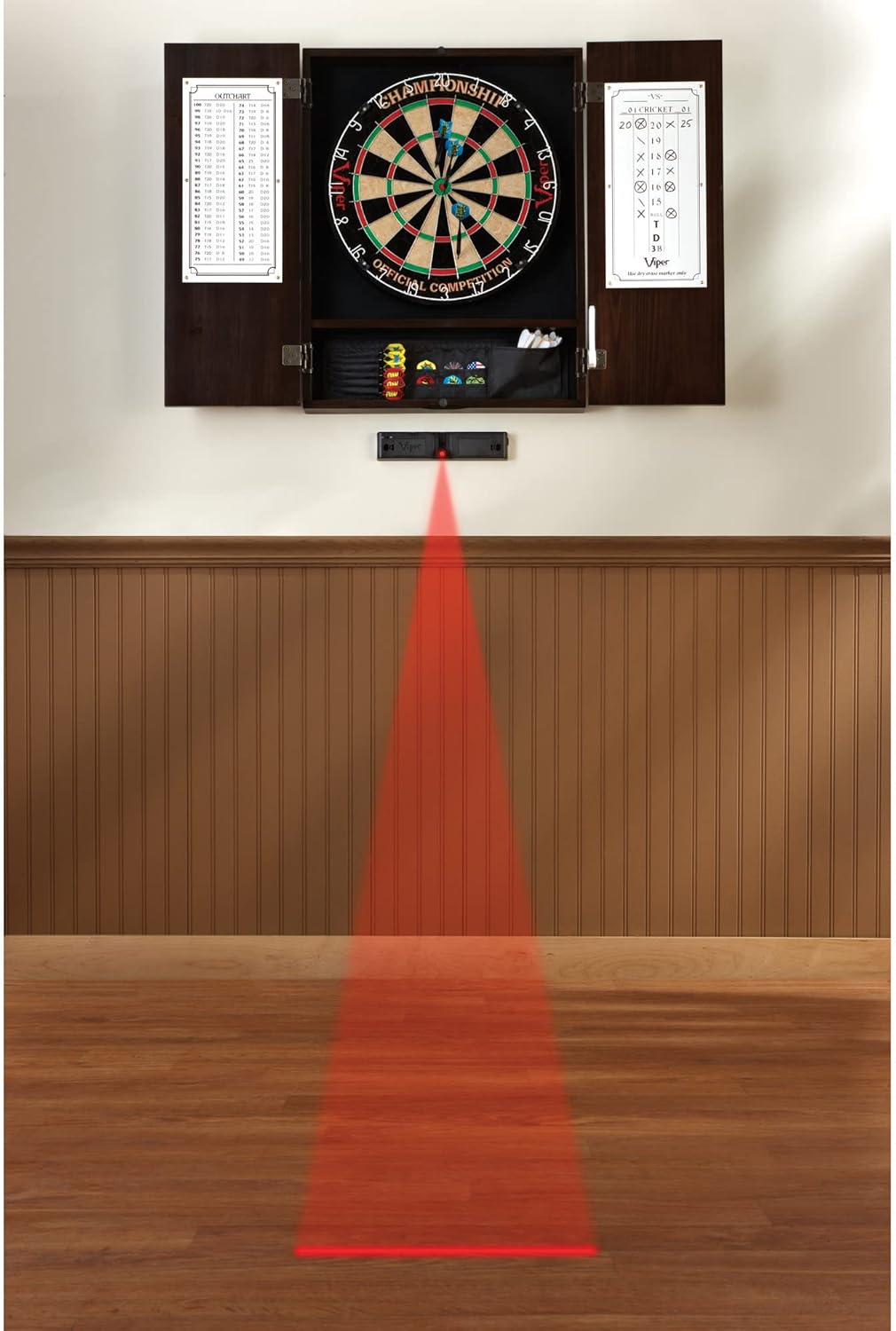 Who This Is For The Viper Ion is designed for social entertainers and recreational players who want to bring a high-energy arcade vibe to their home. This illuminated dartboard is the perfect addition to a man cave, basement, or game room, making it an excellent gift for families and adults who enjoy competitive multiplayer gaming. How to Use Mount the dartboard to any wall using the included hardware and connect the AC adapter for consistent power. For portable play, the Ion also operates on batteries (not included). Select from 48 games using the front-facing buttons and customize settings with 25 or 50 bull options. The LED segments illuminate your target while the automatic scoreboard tracks every hit for up to 8 players simultaneously. Product Dimensions 21.97 in L x 19.49 in W x 1.18 in H | Weight: 3.96 lbs