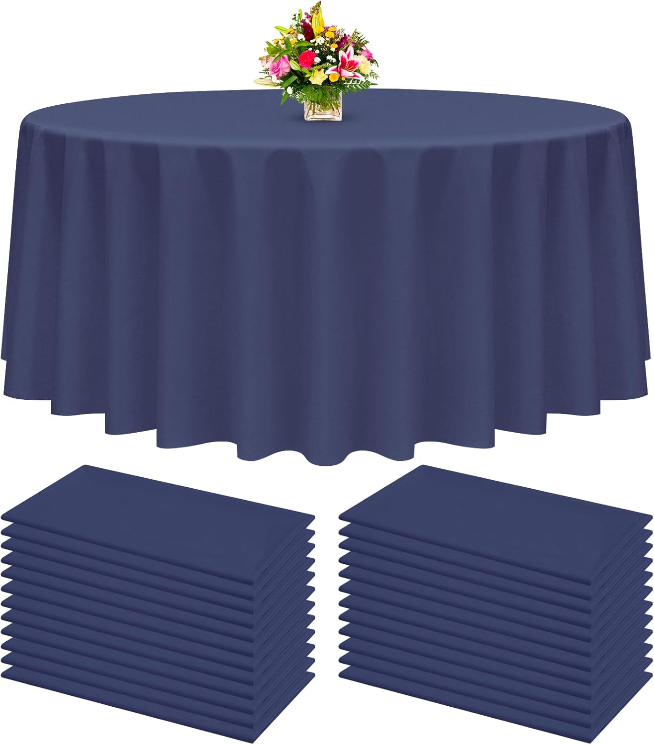 12 Packs 120 inch round plastic tablecloth,Perfect For Any Occasion Including As Christmas Tablecloth,Thanksgiving Tablecloth Disposable, And New Years Eve Tablecloths In Bulk . Product Feature1.Our Plastic Disposable Table Covers Not Only Look Stunning But Are Also Very Sturdy.2.White round tablecloth plastic disposable is easy to clean, easy to clean, just wipe it with a damp cloth,Our disposable party table cloths come in good quality and are large enough.Our Top Quality Plastic Picnic Table Cover Are Definitely The Way To Go.Package Include12 x Disposable Plastic Tablecloths for Round TablesPerfect Suitable for- Weddings- Cocktail parties- Garden parties- Events, picnic- Housewarming parties- New Year's parties- Graduations- Bridal showers- Baby showers- Anniversaries-Engagements-Thanksgiving parties-Christmas parties and etc. We will take your satisfaction first.The plastic tablecloths are a great way to dress up your area, make your events more professional, add a touch of elegance and impress your guests.